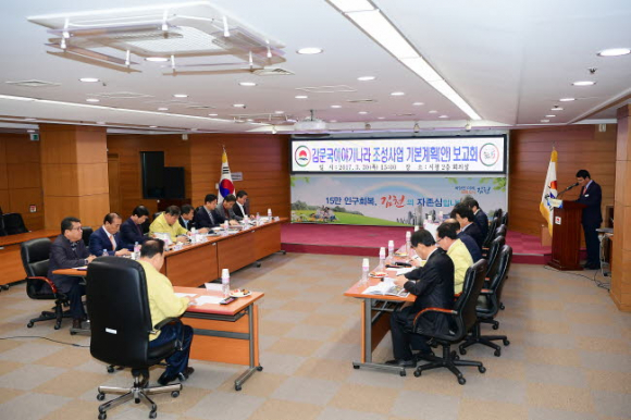 2017. 3월 30일 15:00 김천시 2층 회의실에서 개최된 보고회에 박보생 시장과 지역구 의원인 김세운 부의장, 진기상 자치행정위원장 등 30여명이 참석하였다.