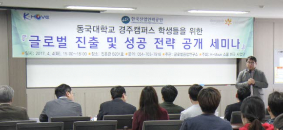 동국대 경주캠퍼스 글로벌융합연구소(소장 이영찬)가 지난 4일 오후 3시 교내 진흥관에서 학생들을 위한 ‘글로벌 진출 및 성공 전략 공개 세미나’를 열었다.