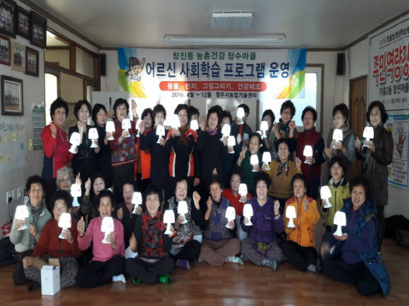 창진경로당 할머니 40여명은 평생학습 교육을 통해 배운 압화공예를 활용해 꽃이 수놓인 ‘취침등’을 만들어 직접 판매에 나섰다. 할머니들이 화투와 윷놀이로 시간을 보내는 경로당 문화를 개선하고 치매예방과 자기개발에 도움 되는 평생학습을 3년째 받으며 농한기를 알차게 보내고 있다.