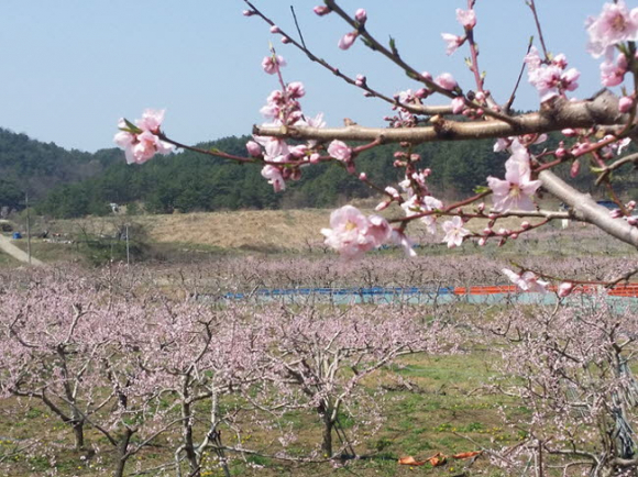 대창면 복사꽃 개화 한창