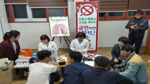 이날 주민들의 흡연에 대한 경각심과 금연의 중요성을 한 번 더 인식하게 하기 위해 금연선포식 및 금연서약서 쓰기, 금연퍼포먼스를 진행하고 흡연자들의 폐활량 및 CO 측정, 소변 중 니코틴검사, 혈압, 혈당 등 기초건강검사를 실시했다.