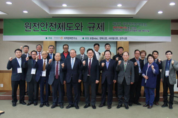 동국대학교 경주캠퍼스 지역정책연구소(소장 박병식)는 지난 13일 오후 2시 동국대학교 100주년 기념관 세미나실에서 "원전안전제도와 규제“라는 주제로 제3차 경주안전상생포럼을 개최했다.
