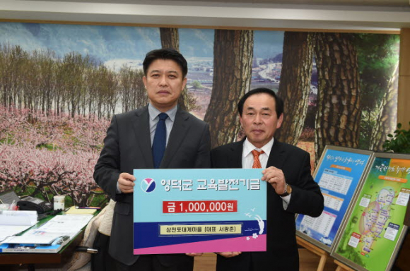 영덕군우리음식연구회 회원일동이 지난 12일 재단법인 영덕군교육발전위원회(이하 (재)영교위, 이사장 이희진)를 찾아와 영덕의 지역인재 양성을 위한 밑거름으로 써달라며 1백만원을 교육발전기금으로 기탁해왔다.