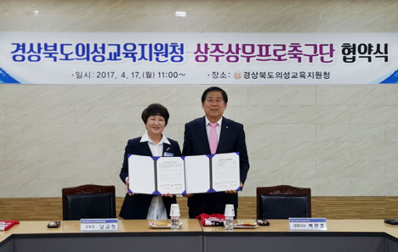 17일 오전 11시, 상주상무프로축구단(대표이사 백만흠)과 경상북도의성교육지원청(교육장 남교희)이 상호 협력을 약속했다.