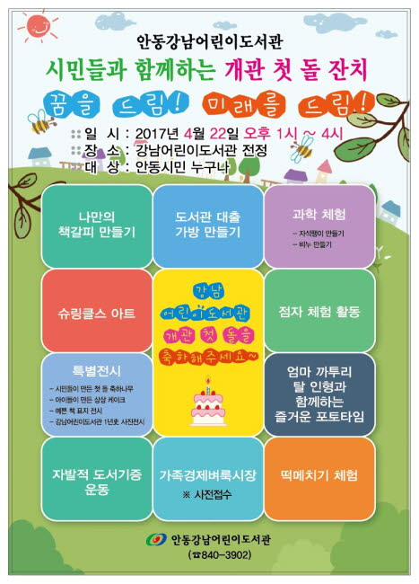 꿈을 드림! 미래를 드림!안동강남어린이도서관, 시민들과 함께 하는 개관 첫 돌 잔치 개최