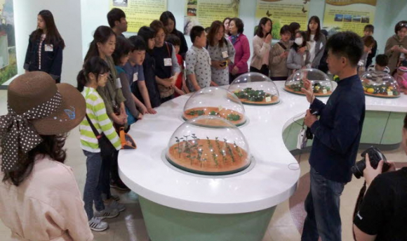 가족 체험객들은 참외생태학습원과 농경문화관, 식물유리온실, 참외재배 하우스를 견학하고 삼동연수원(성주읍 소재)으로 이동하여 텃밭에 명월초 심기 체험 후 직접 상추를 따서 점심식사를 하면서 성주 특산물인 참외를 활용한 참외스무디 간식도 만들었다.