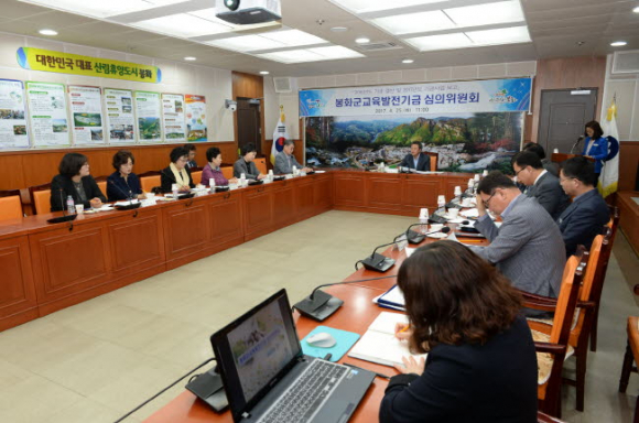 봉화군(군수 박노욱)은 4월 25일(화) 군청 소회의실에서 박노욱 위원장과 위원 10명이 참석하여 봉화군교육발전기금 심의위원회를 개최했다.