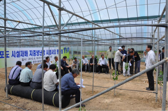 영천시(시장 김영석)는 16일 지중냉난방 시범사업 현장평가회를 농가 및 관계자 60여명이 참석한 가운데 오수동 현지포장에서 개최했다.