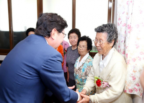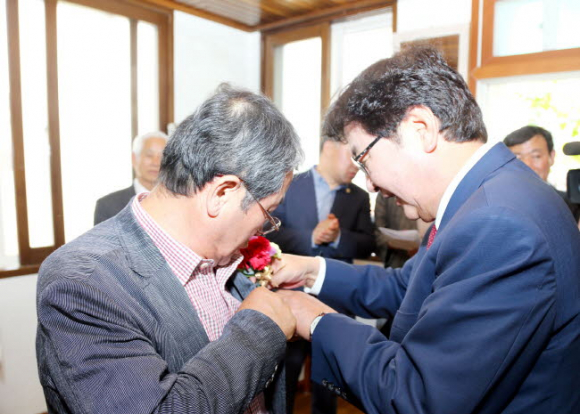 권영세 안동시장, 어르신들께 감사한 마음을 전하며 카네이션 달아 드렸다.