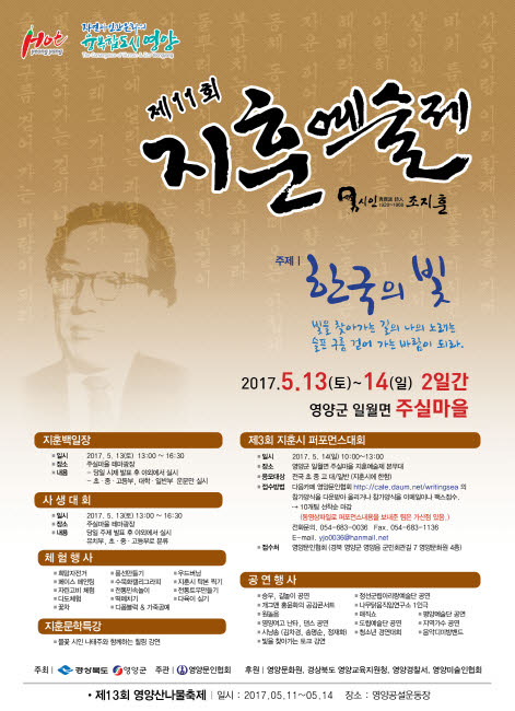 우리나라를 대표하는 청록파 시인이자 지조론의 선비인 조지훈 선생의 사상을 계승・발전시키고자 「제11회 지훈예술제」가 지훈선생의 고향인 경북 영양군 일월면 주실마을에서 개최된다.