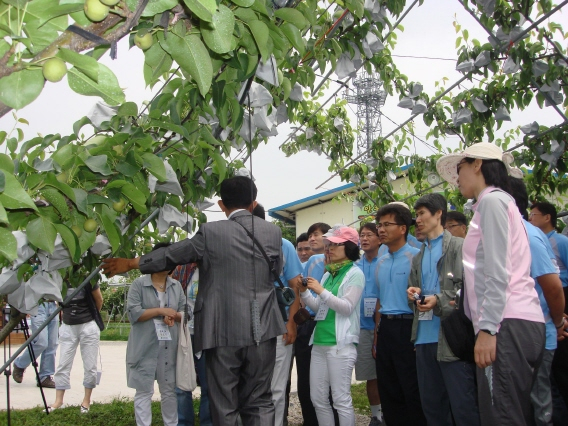 첫 현장교육은 용수배농원(고경면 창하리)을 운영하는 귀농 15년차이며, 농림수산식품부 지정 신지식농업인 안홍석씨 농가에 방문하여 귀농 후 그 동한 고생한 경험담과 그림처럼 재배되고 있는 친환경 배 농장 견학을 하고 많은 사람들이 성공에 감동하기도 했다.