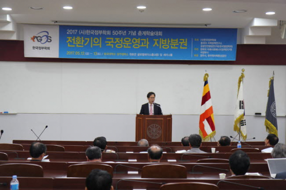 동국대학교 경주캠퍼스 지역정책연구소(소장 박병식)와 한국정부학회(회장 김흥회)는 지난 12일부터 13일까지 교내 원효관에서 ‘전환기의 국정운영과 지방분권’이라는 주제로 2017 한국정부학회 50주년 기념 춘계학술대회를 개최했다.