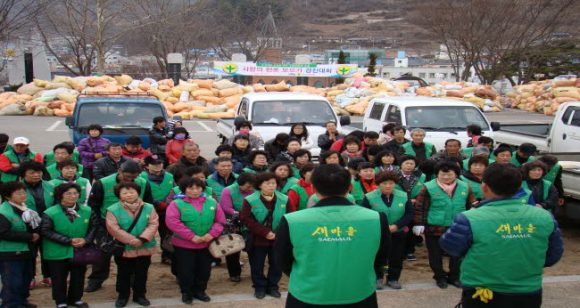 새마을부녀회에서는 자원재활용을 위해 다시 입을 수 있는 옷 모으기 운동을 꾸준히 전개하여 환경오염도 줄이고 이웃사랑 나누기 실천에 봉사하는 단체로 앞장서고자 한다 |
