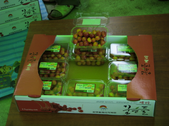김천시에서는 2007년도부터 꿈앤들 체리작목반에 비가림하우스와 저온저장고등 550백만원을 투자하여 생산기반조성과 신선한 고품질 국내산체리의 생산유통을 통한 농업소득향상에 박차를 가하고 있다. |