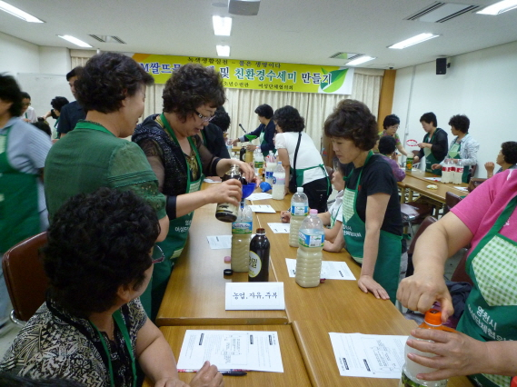 이날 행사는 우리 주위에서 흔히 구할 수 있는 쌀뜨물을 이용하여 친환경제품을 만드는 방법과 기름을 흡수, 분해하고, 세균번식이 걱정없는 수세미를 만드는 방법으로 날로 심각해지는 환경오염에 대한 심각성을 인식하고 가정에서부터 친환경제품 사용을 활성화하기 위해 개최했다.