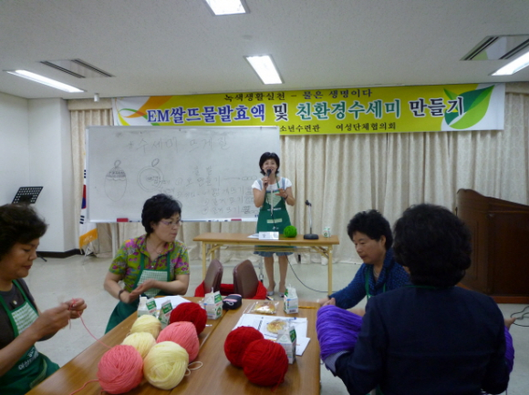 영천시여성단체협의회(회장 우애자)는 21일 청소년수련관에서 지역사회활동에 관심이 많은 여성단체회원 50여명과 함께 녹색생활실천의 일환으로 EM쌀뜨물발효액 및 친환경수세미 만들기 체험행사를 가졌다.