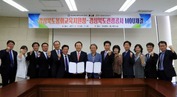 경상북도관광공사(사장 김대유)는 경상북도봉화교육지원청(교육장 김종길)과 19일 안동문화관광단지내 유교랜드에서 학생 인성함양 및 각종 정보의 상호교류를 위한 업무협약을 체결했다.