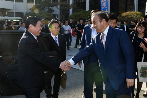 최양식 경주시장이 19일 대외협력실에서 ‘호찌민의 날 in 경주 기념행사’를 앞두고 경주를 방문한 베트남 호찌민시 응우웬 탄 퐁(Nguyen Thanh Phong) 인민위원장과 방문대표단에게 환영의 인사를 건넸다.