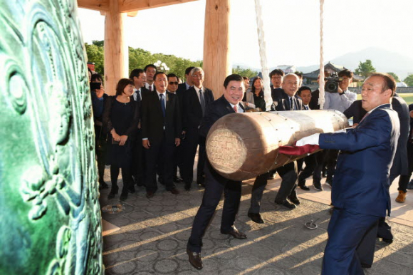 한편 이 날 호찌민시 방문단은 신라대종 공원을 찾아 경주 방문을 기념하는 타종행사를 가진후 경주시장 주최 환영만찬에 참석했다. |