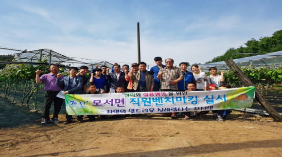 모서면 맞춤형으로 기획된 이번 벤치마킹은 청포도로 품종전환이 활발하게 이뤄지고 있는 지역동향을 반영하여 인근 포도주산지 영동군의 포도재배 선도농가를 방문·체험하였으며, 남해안 관광벨트의 관광체험요소를 탐구함으로써 벤치마킹의 실효성 및 관심도를 한번에 끌어올렸다.