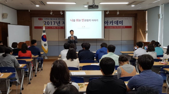 이번 제1차 희망복지아카데미에서는 김헌 한국보건복지인력개발원 책임연구원(사회복지학 박사)가 “지역복지활성화를 위한 성공적인 전략〃이라는 주제로 열띤 강의를 진행했다.