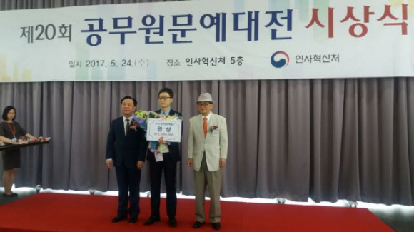 영덕군청 주민복지과 김두성 실무관이 인사혁신처가 주최하고 (사)한국문인협회가 후원하는 ‘제20회 공무원 문예대전’에서 국무총리상(금상)을 수상하는 영예를 안았다.