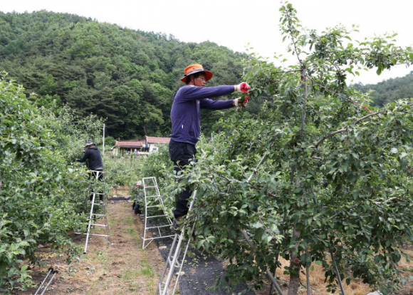 석보면사무소, 기획감사실, 새마을경제과, 문화관광과 직원 30명이 참여한 이번 일손 돕기는 지난달 사고로 부인의 허리수술에 따른 일손 부족으로 도움이 필요한 화매리 최○○농가 사과밭에서 사과적과 작업을 지원하였으며, 직원들이 하나같이 열심히 일한 결과 적과 작업을 마무리 할 수 있었다.