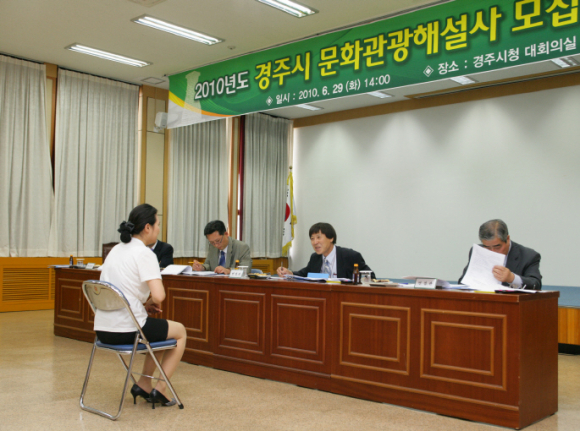 경주시는 지난 4일 신청자 38명중 서류심사를 통과한 18명에 대해 29일면접을 실시, 문화관광해설자 10명을 신규로 선발한다.