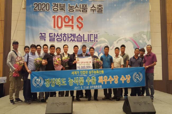 지난 6월 2일 경주에서 개최된 “2017년 경북 농식품 수출촉진대회”에 수출단지회원 등 30여명이 참석한 가운데 경북도내 농식품수출평가 최우수 기관수상과 더불어 올해 상주시의 수출목표인 300억 달성에 더욱 힘찬 결의를 다졌다.