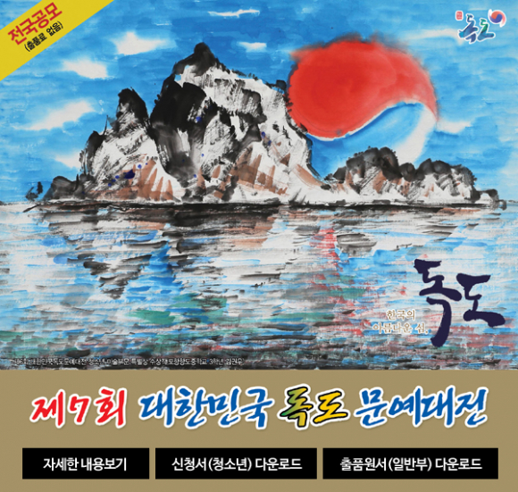 대한민국 독도문예대전은 영토 주권을 강화하고, 이를 예술로 승화시키는 문화예술 축제로 자리매김하게 되면서 올해 7회째를 맞이하게 됐다. 국민과 청소년들에게 올바른 역사의식과 함께 독도수호에 대한 적극적인 참여 의지를 불러일으키는 소중한 기회가 될 독도문예대전 작품 공모에는 많은 시상이 예정돼 있어 지역민과 학교, 단체, 청소년들의 많은 응모가 기대된다.