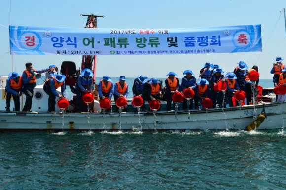 월성원자력은 1999년부터 고급 어종인 참돔, 돌돔, 우럭, 전복 치패 등 약 610만미(약 46억 원 상당)를 인근 연안에 방류해 어족자원 조성과 소득 증대에 기여하고 있다. |
