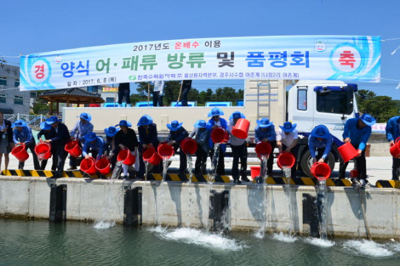 월성원자력 박양기 본부장은“오늘 바다로 방류한 어패류들이 동해안의 해양환경을 보호하고 수산 자원을 늘리는 밑거름이 됐으면 좋겠다”고 말했다. 방류 행사를 공동 주최한 정미호 나정 2리 어촌계장은“상업적 어획과 기후 변화로 청정 해역인 동해 연안의 어족 자원이 감소하고 있어 어민들의 시름이 깊다”며“오늘 방류한 어패류들이 훗날 우리 어촌계에 귀중한 자산이 됐으면 좋겠다”고 말했다. 원전 양식장은 바다로 방류되는 온배수를 이용해 겨울철에도 어류를 성장시킬 수 있는 좋은 조건을 갖고 있어 일반 양식장에 비해 30% 이상 생산량을 증가시킬 수 있는 장점이 있다. 미국, 프랑스, 일본 등에서는 양식장은 물론 온실과 농수산물 건조나 난방 등에도 원전 온배수를 상업적으로 활용하고 있다.