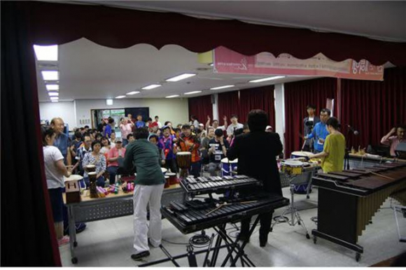 지난 6월 8일 경주시장애인종합복지관(관장 종성스님)에서는 (사)대한민국청소년음악마을예술단(총감독 한상현)의 10여명의 단원이 방문하여 ‘스마을타악콘서트’, ‘악기체험전시회’를 열었다.