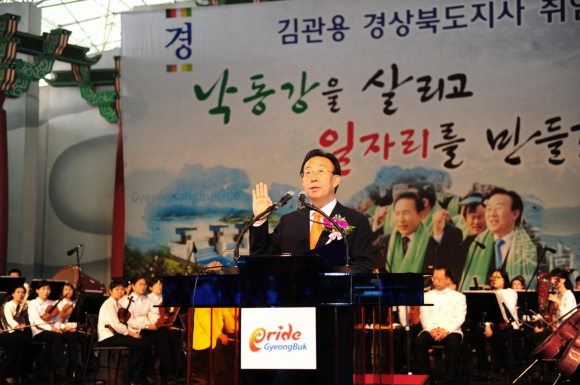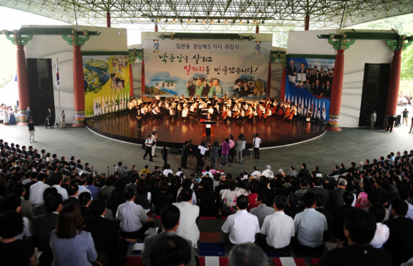 오늘부터 시작하는 민선 5기는 경북도민의 엄중한 목소리에 귀를 열고 현장에서 길을 찾고, 소통에서 답을 얻을 것입니다. 도민과 한마음이 되어 내일을 향해 나아갈 것입니다.