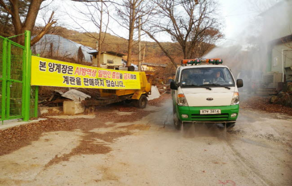 거점소독시설 6.7.부터 운영하며 가금관련차량 소독 실시 특수가금 사육농가 축협 공동방제단 동원 소독 실시