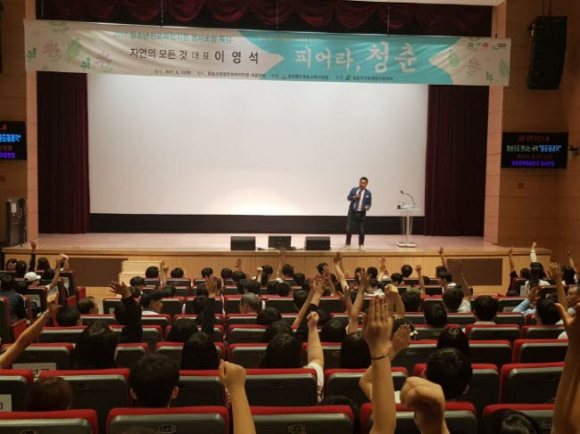 이번 특강에서는 관내 5개 고등학교 학생 400여명이 참여한 가운데 ㈜자연의모든것 이영석 대표가 『피어라, 청춘』이라는 주제로 강의했으며, 다양한 경험을 겪은 인생멘토로서 학생들과 이야기를 나눌 수 있는 시간도 가졌다