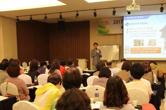 경북관광발전에 앞장서고 있는 경상북도관광공사가 문화관광해설사 역량강화에 박차를 가하고 있다. 경상북도관광공사는 영주시와 청송군, 봉화군 일원에서 문화관광해설사 121명을 대상으로 13일부터 15일까지 ‘2017 경북도 문화관광해설사 3차 보수교육’을 가졌다. 이번 보수교육은 울진문학회 초대회장이신 황무굉 교수의 경북의 유학과 선비문화를 시작으로 안동대 임세권 교수의 문화유산으로 읽는 역사 등 이론수업과 심내혈관질환 예방법, 구조 및 응급처치의 실습교육, SNS 및 스마트활용 해설기법 등 문화관광해설사들이 현장에서 바로 응용 할 수 있는 다양한 교육프로그램으로 이루어 졌다.
