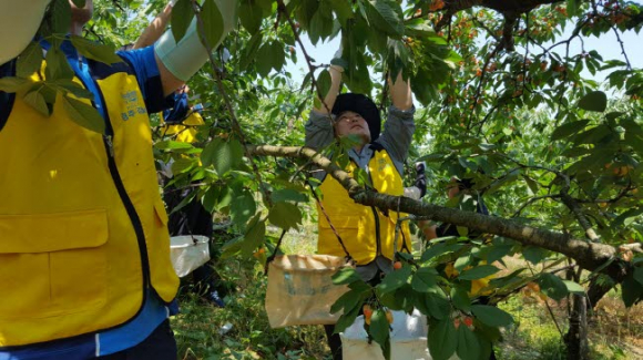 경주경찰서(서장 양우철)은,15일 오전 경주시 건천읍 한 체리 농가를 방문해 체리 수확 농촌 일손 돕기에 나섰다.