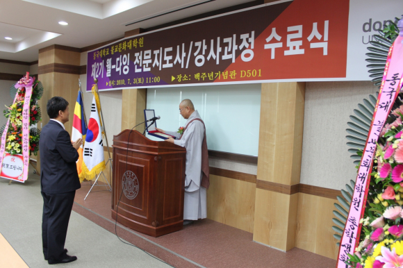 동국대학교 경주캠퍼스(총장 손동진) 불교문화대학원(원장 정성본)은 지난 3일 교내 백주년기념관에서 ‘제2기 웰다잉 전문지도사(강사)과정 수료식’을 가졌다.