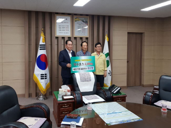 해청기계, 한해대비 양수호스 기증