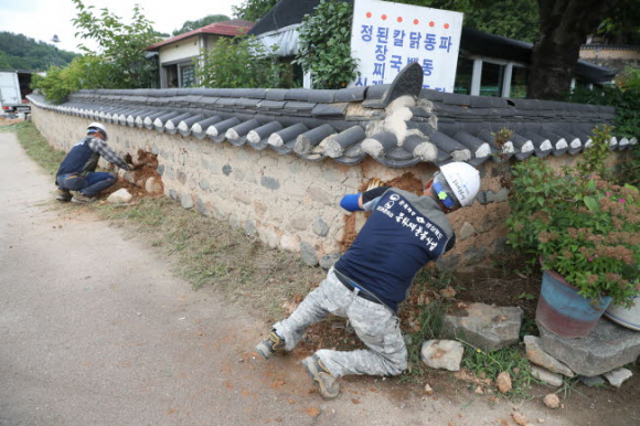 현장에서 경미 보수활동을 하고있는 돌봄사업단 직원들은 관리대상 문화재가 가까운 곳에 있어 수시로 오갈 수 있고 여러 사업팀이 힘을 합쳐 진행하니까 사업 효율도 좋고 소유자들로부터도 좋은 반응을 받아 더운 날씨지만 힘이 난다라고 밝혔다.