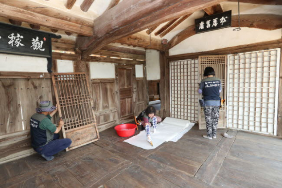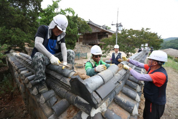 6월 21일에는 이른 아침부터 신라문화원문화재돌봄사업단 소속 미장 5명, 번와와공 5명, 담장 5명, 창호 5명, 목공 2명 등 20여명이 양동민속마을 내 관가정, 수졸당, 동호정 등에서 기와보수, 담장 및 벽체보수, 목공작업 등 경미수리를 위해 함께 구슬땀을 흘렸다. 양동민속마을은 지금까지 문화유산국민신탁에서 관리하다보니 거리적인 어려움이 있어 문화재청이 올해부터 신라문화원에 관리를 위탁했다.