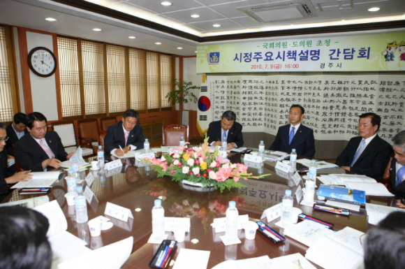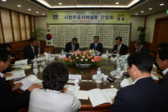 최양식 경주시장은 9일 오후 4시 정수성 국회의원, 도의원, 시의원등 15명을 초청 국.도비 확보 설명회 및 간담회를 가졌다.