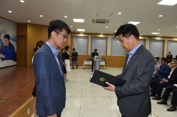 영덕군은 지난 30일 영덕군청 대회의실에서 열린 민선6기 취임 3주년 행사에서 규제개혁의 적극 추진으로 일자리 창출 및 군민불편해소에 기여한 공무원 2명에게 표창장을 수여했다.
