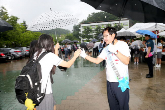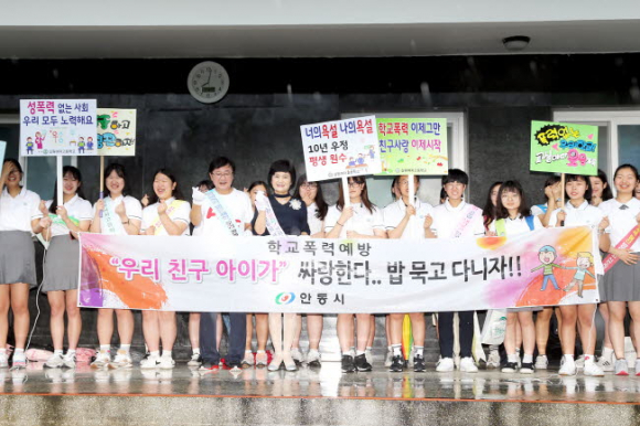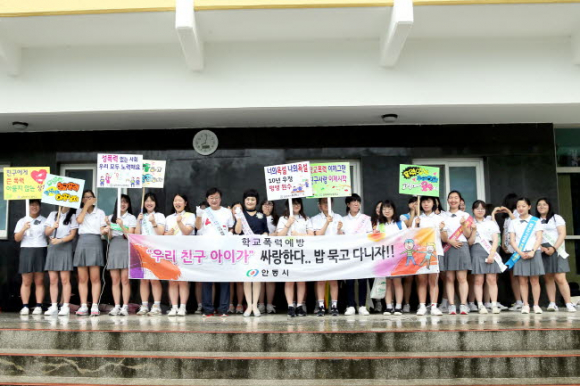 이른 아침 길원여자고등학교를 찾은 권 시장은 안동경찰서, 안동교육지원청, 학교 선생님들과 등교하는 학생들에게 아침식사로 주먹밥을 나눠주며 학교폭력예방 홍보활동에 나섰고, 교직원들과 간담회에서는 학교현장의 어려움을 청취했다.
