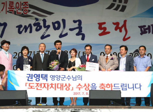권영택 영양군수는 7월 8일 서울어린이대공원에서 5,000명의 관람객과 수상자들이 참석한 가운데 ‘제5회 대한민국 도전 페스티벌’에서 「도전 한국인상」을 수상했다. 「도전한국인상」은 2013년부터 지방자치, 문화․예술, 사회, 국제교류 등 다양한 분야에서 도전정신을 발휘하여 빛나는 성과를 올린 한국인을 발굴하고, 시민추천도 받아 도전한국인운동본부에서 매년 시상하고 있다.