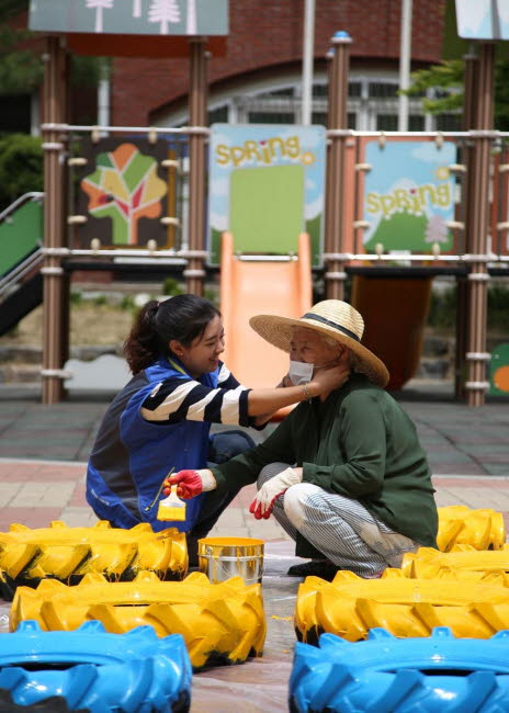 이번 수상작은 안동시 지역사회보장협의체 회원과 주민의 활동모습을 담아 따뜻하고 감동을 보여줬다. 타이어 화분에 예쁜 페인트를 칠하며 봉사활동을 하고 있는 노인에게 어린 학생이 페인트의 나쁜 냄새를 예방하기 위해 손수 마스크를 씌어주는 모습을 담은 사진작품이다.