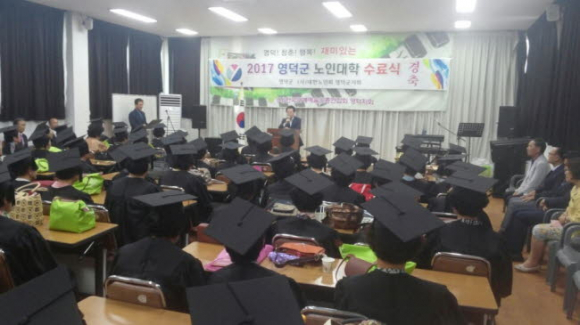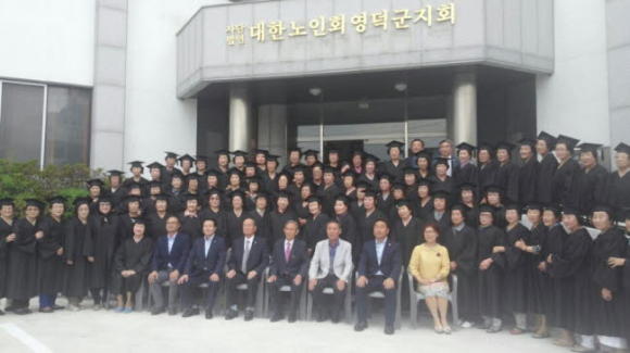 영덕군에서는 지난 10일 오후 3시 30분 영덕군노인복지회관에서 대한노인회 영덕군지회 주관으로 2017년 영덕군 노인대학 수료식을 가졌다. 이번 행사는 내빈소개, 국민의례, 노인강령 낭독, 표창장 수여(이순옥, 이경선), 수료증 수여(총 91명), 인사말, 기념촬영 순으로 진행됐다.