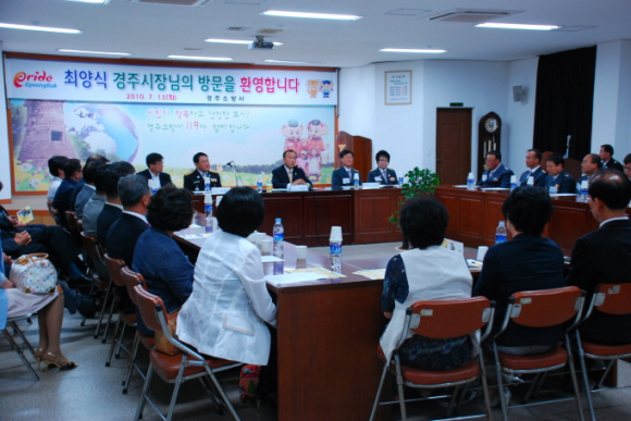 7월 13일 오후 3시 최양식 경주시장이 경주소방서(서장 이현호)를 방문했다. 이날 소방행정자문단, 각 읍․면 의용소방대장, 소방공무원 등 50여명이 참석한 가운데 업무보고, 당면 현안, 건의사항 등에 대해 의견을 교환했다. 최양식 경주시장은 불철주야 경주시민의 안전을 책임지고 있는 소방공무원들을 격려하고 앞으로 시민에게 다가가는 시정을 펼칠 것을 약속했다.