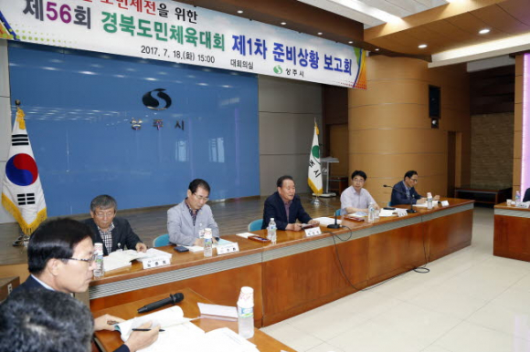 상주시(시장 이정백)에서는 7월 18일 시청 대회의실에서 시청 간부 및 유관기관․단체 관계자 등 80여명이 참석한 가운데 제56회 경북도민체육대회 제1차 준비상황보고회를 가졌다.